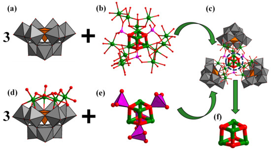- Wang, S.-S.; Kong, X.-Y.; Wu, W.; Wu, X.-Y.; Cai, S.; Lu, C.-Z. Synergic coordination of multicomponents for the formation of a {Ni30} cluster substituted polyoxometalate and its in-situ assembly. Inorg. Chem. Front. 2022, 9, 4350–4358. [Google Scholar] [CrossRef]
