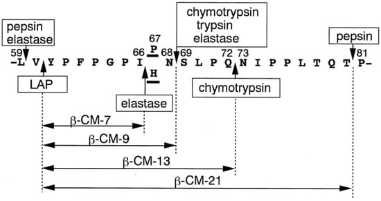 Selected enzymes and enzyme combinations involved in the proteolysis of cow β-casein leading to the release of β-casomorphins (β-CM). Source: [133]. Reproduced with permission from Elsevier.