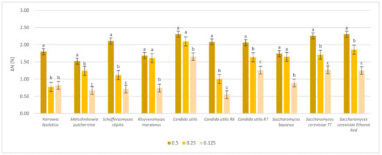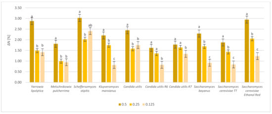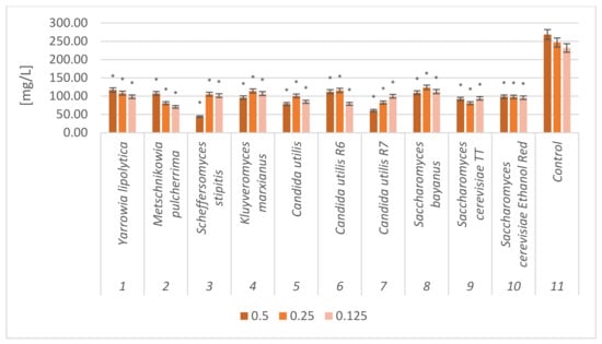 | Yeast Strain | 0.5 | 0.25 | 0.125 | Control |