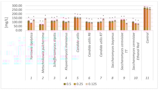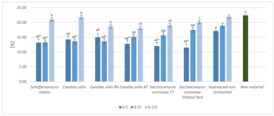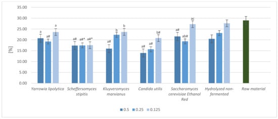 - Dygas, D.; Janicka, P.; Berłowska, J.; Kręgiel, D. Conventional and Unconventional Yeasts Able to Grow on Rapeseed Meal Hydrolysates. BioResources 2022, 17, 3082–3094. [Google Scholar] [CrossRef]