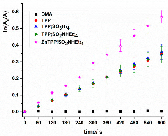 - Pucelik, B.; Paczynski, R.; Dubin, G.; Pereira, M.M.; Arnaut, L.G.; Dabrowski, J.M. Properties of halogenated and sulfonated porphyrins relevant for the selection of photosensitizers in anticancer and antimicrobial therapies. PLoS ONE 2017, 12, e0185984. [Google Scholar] [CrossRef] [PubMed]