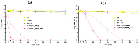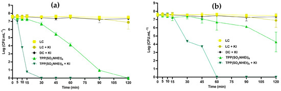 - Vieira, C.; Gomes, A.T.P.C.; Mesquita, M.Q.; Moura, N.M.M.; Neves, M.G.P.M.S.; Faustino, M.A.F.; Almeida, A. An Insight Into the Potentiation Effect of Potassium Iodide on aPDT Efficacy. Front. Microbiol. 2018, 9, 2665. [Google Scholar] [CrossRef] [PubMed]