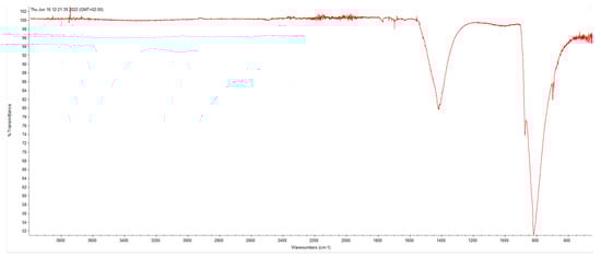Selection rules enable A1g, Eg, and F2g modes to be Raman-active due to symmetric stretching (υ1), asymmetric stretching (υ3), symmetric bending (δ2) and asymmetric bending (δ4) of the MoO4 units. The measured bands match what has been reported in the literature: 891 cm−1, 808 cm−1, 380 cm−1 and 302 cm−1. In addition to these bands, it is possible to note a further signal at about 115 cm−1 that can be assigned to translational collective mode of the crystalline lattice [53]. The assignments are reported in Table 3. In the case of IR spectrum instead, the band at about 550 cm−1 can been attributed to the bending vibration of the MoO42− tetrahedron, while the signals in the range 650–800 cm−1 are due to the stretching vibration of the tetrahedra observed also; in particular, the very intense band at about 830 cm−1 is due to O–Mo–O stretching [54,55].