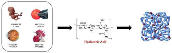 Hydrogels are classified as “permanent” or “chemical” when they form covalent bonds between the polymer chains [27]. As a result, these types of hydrogels retain their structure even after swelling. Chemical hydrogels can be generated through crosslinking polymers using radiation, polyfunctional compounds, free-radical-generating compounds and, recently, enzymatic crosslinking [28]. They have better chemical, mechanical and thermal stability than physical hydrogels. Moreover, they can be formed from either synthetic or natural polymers [29]. The latter are biocompatible, biodegradable, bacteriostatic and even have healing properties. Synthetic hydrogels do not have these inherent bioactive properties (Figure 3).