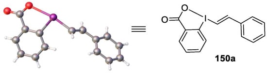 - Kitamura, T.; Fukuoka, T.; Fujiwara, Y. Synthesis of novel vinylbenziodoxolones from alkynyl(o-carboxyphenyl)iodonium salts. Synlett 1996, 1996, 659–660. [Google Scholar] [CrossRef]