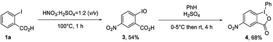 - Morrison, G.F.; Hooz, J. Observations related to the preparation of 2-phenyliodoniobenzoate. J. Org. Chem. 1970, 35, 1196–1198. [Google Scholar] [CrossRef]