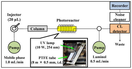 Scheme diagram for the HPLC with online photoreactor and luminol CL detection system.