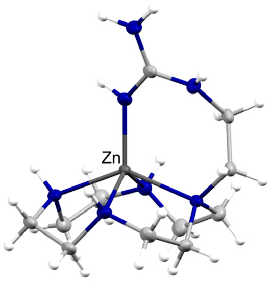 - Aoki, S.; Iwaida, K.; Hanamoto, N.; Shiro, M.; Kimura, E. Guanidine Is a Zn 2+ -Binding Ligand at Neutral PH in Aqueous Solution. J. Am. Chem. Soc. 2002, 124, 5256–5257. [Google Scholar] [CrossRef]