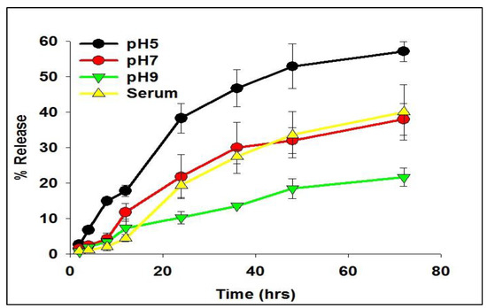 Similarly, the release kinetics were examined in 0.1 M HEPES buffer (pH 5), and serum. All the determinations were performed in triplicates. Results are reported as the mean ± SD.