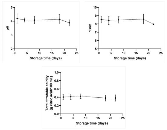 2.1. Juice Blend pH, Total Soluble Solids (°Brix), and Total Titratable Acidity (TTA)