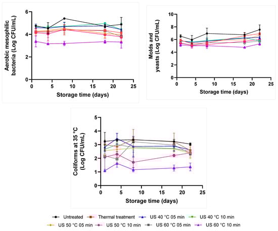 - Martínez-Flores, H.E.; Garnica-Romo, M.G.; Bermúdez-Aguirre, D.; Pokhrel, P.R.; Barbosa-Cánovas, G.V. Physico-chemical parameters, bioactive compounds and microbial quality of thermo-sonicated carrot juice during storage. Food Chem. 2015, 172, 650–656. [Google Scholar] [CrossRef]