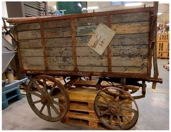 This work is focused on the study of the protective paints of two vehicles belonging to the Museum für Kommunikation in Frankfurt and used by the German postal service at the turn of the two centuries. The first one is a cart for telecommunications services and is dated approximately 1920–1940 (Figure 1). This cart was constructed in the Reichspost era and was continuously used by the postal service also during the German Democratic Republic (GDR). The cart was found in the garden of a former postal employee in 2015. It was partially sunk into the ground, where it presumably stood for decades after having been taken out of service.