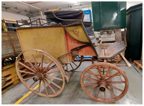 The second vehicle is a carriage of the German postal service, dated around 1880 (Figure 2). The vehicle was found in 1999 when the King’s family house was demolished. It is currently stored at the Museum für Kommunikation in Frankfurt. It is supposed to have been used for the postal service between Schramberg and Rottwell until 1910.