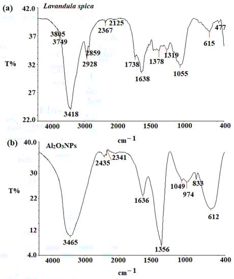 3.5. Preparation of Al2O3NPs Using Lavandula spica Flower Extract