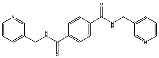 Herein, we adopted the semi-rigid N,N′-bis(pyridin-3-ylmethyl)terephthalamide (L), as shown in Figure 1, and differently substituted dicarboxylic acid as part of our ongoing research into understanding the relationship between the mixed-ligand system and the structural variety of the new CPs. Several CPs containing L and dicarboxylate ligands have been structurally characterized. Three CPs, namely [Co(L)(HIPA)(H2O)2]⋅H2O (H2HIPA = 5-Hydroxyisophthalic acid), [Ni(L)(HIPA)(H2O)2]⋅H2O, and [Cu(L)(HIPA)]⋅4H2O, show similar 2D cellular networks for the first two complexes, and the latter has a 4-connected 3D structure with a semicircle 1D channel [9]. On the other hand, [Zn(L)(1,4-BDC)]·H2O (1,4-H2BDC = terephthalic acid), [Zn(L)(1,3- BDC)]·H2O (1,3-H2BDC = isophthalic acid), [Zn(L)(1,2-BDC)] (1,2-H2BDC = phthalate), and [Cd(L)0.5(1,2-BDC)(H2O)] display 2D structures with 63 and 44 topologies and a 4-connected 3D framework and a 1D structure, respectively [10], whereas [Cd3(L)2(1,4-bdc)3]·4H2O and [Cd(L)(1,4-bdc)]·2H2O are (3,5)-connected nets with the (3⋅72 )(32⋅4⋅75⋅82 ) topology [11], indicating that the types of the dicarboxylate play important role in determining the structural diversity.