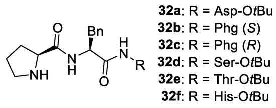 Tripeptides 32a–f employed to catalyze the asymmetric aldol reaction.