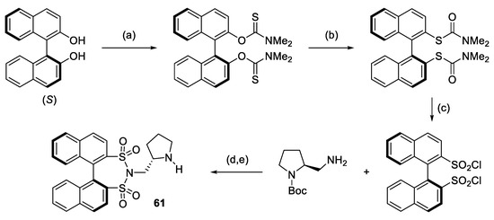 - Ban, S.; Du, D.M.; Liu, H.; Yang, W. Synthesis of Binaphthyl Sulfonimides and Their Application in the Enantioselective Michael Addition of Ketones to Nitroalkenes. Eur. J. Org. Chem. 2010, 2010, 5160–5164. [Google Scholar] [CrossRef]