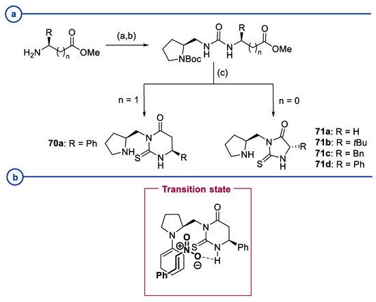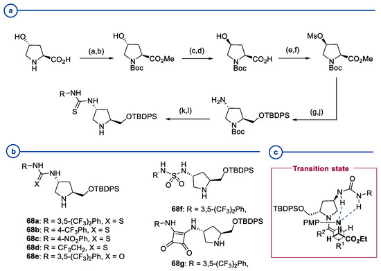 - Polácková, V.; Krištofíková, D.; Némethová, B.; Górová, R.; Meciarová, M.; Šebesta, R. N-Sulfinylpyrrolidine-Containing Ureas and Thioureas as Bifunctional Organocatalysts. Beilstein J. Org. Chem. 2021, 17, 2629–2641. [Google Scholar] [CrossRef] [PubMed]