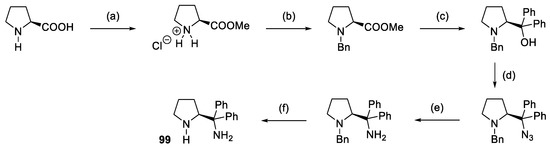 - Shimogaki, M.; Maruyama, H.; Tsuji, S.; Homma, C.; Kano, T.; Maruoka, K. Synthesis of Chiral Tritylpyrrolidine Derivatives and Their Application to Asymmetric Benzoyloxylation. J. Org. Chem. 2017, 82, 12928–12932. [Google Scholar] [CrossRef] [PubMed]