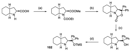 - Reyes-Rodríguez, G.J.; Rezayee, N.M.; Vidal-Albalat, A.; Jørgensen, K.A. Prevalence of Diarylprolinol Silyl Ethers as Catalysts in Total Synthesis and Patents. Chem. Rev. 2019, 119, 4221–4260. [Google Scholar] [CrossRef]
