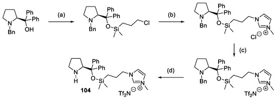 - Lombardo, M.; Chiarucci, M.; Quintavalla, A.; Trombini, C. Highly Efficient Ion-Tagged Catalyst for the Enantioselective Michael Addition of Aldehydes to Nitroalkenes. Adv. Synth. Catal. 2009, 351, 2801–2806. [Google Scholar] [CrossRef]