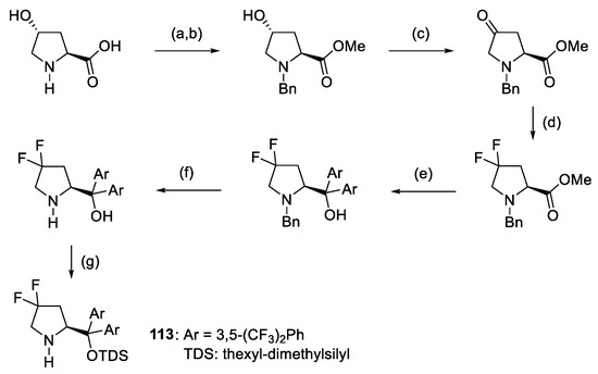 - Sparr, C.; Tanzer, E.M.; Bachmann, J.; Gilmour, R. A Concise Synthesis of (S)-2-(Fluorodiphenylmethyl)Pyrrolidine: A Novel Organocatalyst for the Stereoselective Epoxidation of α,β-Unsaturated Aldehydes. Synthesis 2010, 8, 1394–1397. [Google Scholar] [CrossRef]