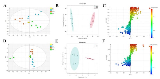 To determine the underlying mechanism of genistin in the treatment of hyperlipidemia, multivariant PCA and OPLS-DA were applied with SIMCA-P 14.0 Demo software (Figure 4A,B,D,E). PCA is an unsupervised cluster analysis model without preprocessed datasets. It can be used to evaluate differences in metabolic profiles of Con, Mod, and Gen.