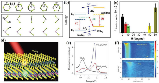 - Liu, K.; Zhang, L.; Cao, T.; Jin, C.; Qiu, D.; Zhou, Q.; Zettl, A.; Yang, P.; Louie, S.G.; Wang, F. Evolution of interlayer coupling in twisted molybdenum disulfide bilayers. Nat. Commun. 2014, 5, 4966. [Google Scholar] [CrossRef]