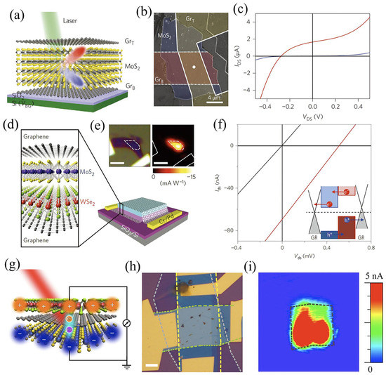 - Yu, W.J.; Liu, Y.; Zhou, H.; Yin, A.; Li, Z.; Huang, Y.; Duan, X. Highly efficient gate-tunable photocurrent generation in vertical heterostructures of layered materials. Nat. Nanotechnol. 2013, 8, 952–958. [Google Scholar] [CrossRef]