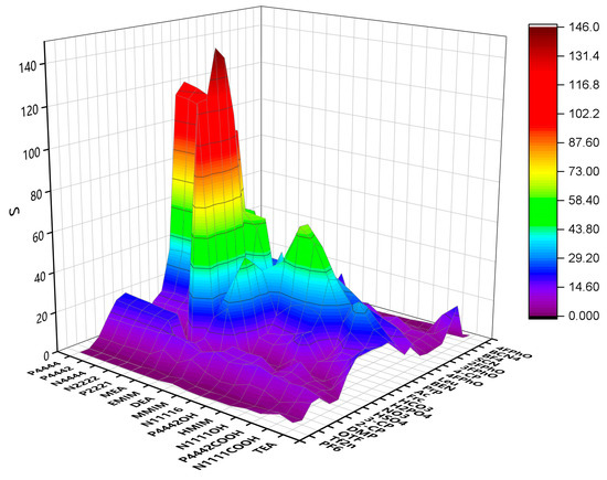 3.2. Extraction Performance Index of ILs Using the COSMO-RS Model