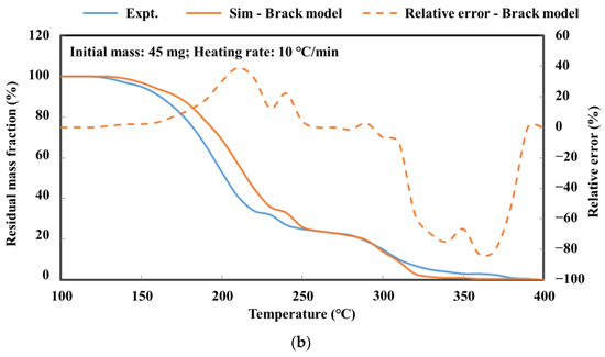 The detailed kinetic model of the deposit reaction is required to quantitatively describe the production of the deposit. Ebrahimian [17] has established the reaction kinetic model of the urea pyrolysis process. It considered four kinds of components of deposit, including urea, biuret, CYA and ammelide, which provided a guide for the quantitative study of deposit formation. Brack, et al. [18] have revised the reaction path based on the Ebrahimian mechanism model. They re-identified the reaction kinetic parameters, according to the results of thermogravimetric tests with different urea initial masses, temperature heating rates and reactor configurations. However, Figure 1 shows that the simulation values of urea pyrolysis, respectively, from the above reaction kinetic models established by Ebrahimian and Brack, are different from the experimental values.
