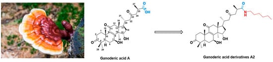 In order to protect the structure and activity of compounds in a timely manner, the patent Preparation method of Ganoderic A amide derivatives useful as anti-tumor drugs, China CN112574272 A 2021-03-30, refers to the synthesis of the derivatives and simple in vitro cell anti-proliferation screening. In subsequent studies, the activity of the derivatives in other cell lines was found and the mechanism was investigated. The relevant experimental results are presented in this article.