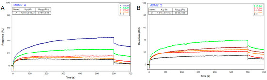 The binding curve of MDM2 with GAA (A) and A2 (B).