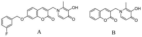 Alzheimer’s disease (AD) is a degenerative disease of the central nervous system that occurs in old and pre-old age. It is characterized by cognitive and behavioral dysfunction []. The clinical manifestations include memory impairment, persistent intellectual decline, aphasia, loss of judgment ability and dyskinesia []. It is the third largest disease after cardiovascular diseases and tumors that disables and kills the elderly []. The main pathological feature of AD is the gradual loss of central nervous system function []. Although AD was discovered more than 100 years ago and related studies in the fields of neurology, pathology, molecular genetics, immunochemistry and computer modeling continue to develop, the pathogenesis and pathogenicity of AD remains ambiguous []. The pathogenesis of AD is complex, involving β-amyloid protein deposition, neurotransmitter deficiency, metal metabolism imbalance, overexpression of monoamine oxidase B (MAO-B), neuroinflammation, oxidative stress, tau protein hyperphosphorylation, etc. [,]. At present, acetylcholinesterase (AChE) inhibitors, N-methyl-D-aspartate (NMDA) receptor antagonists or a combination of them are used clinically to increase the content of neurotransmitters in the synaptic space to alleviate cognitive and behavioral disorders []. Until now, there have been five anti-AD drugs approved by the FDA, namely, the AChE inhibitor tacrine [], donepezil [], rivastigmine [], galantamine [] and the NMDA receptor antagonist memantine []. However, these single-target drugs have poor efficacy, which can only alleviate or improve the symptoms of AD patients to a certain extent but cannot prevent or reverse deterioration of the disease []. In view of the defects of traditional single-target drug therapy methods, the research and development of anti-AD drugs at home and abroad has developed towards the direction of multi-target drugs, that is, a multi-target ligands (MTDLs) strategy based on “one molecule, multiple targets”, which improves the therapeutic effect by simultaneously regulating multiple signal pathways in the pathogenesis of AD []. Compared with single-target drugs, multi-target drugs can make up for the low bioavailability of a single drug, the poor efficacy and insufficient patient tolerance and compliance caused by drug combination, and the toxicity of potential drug metabolism interactions, with unique potential [,]. In view of the importance of MAO-B, bio-metals and oxidative stress in the treatment of AD, our group designed and synthesized a series of new hydroxypyridinone–coumarin hybrids as multimodal MAO-B inhibitors and iron chelates to combat AD.