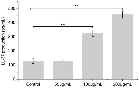 Effect of PNFS on peptide LL-37 production determined using ELISA. ** p < 0.01. PNFS: Panax notoginseng flower saponins.