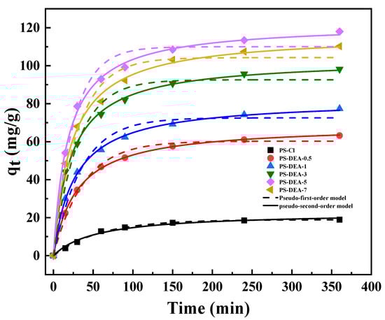 - Simonin, J.−P. On the comparison of pseudo−first order and pseudo−second order rate laws in the modeling of adsorption kinetics. Chem. Eng. J. 2016, 300, 254–263. [Google Scholar] [CrossRef]