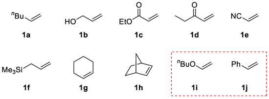 A list of some alkenes for the attempted dithiolation by prolonging the photoirradiation in the thioselenation.