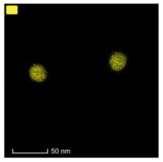 To calculate the number of Tmab molecules conjugated to each AuNP, Tmab was iodinated ([131I]Tmab) using the method described in [38]. Briefly, 1.5 mg Tmab and 0.01 M PBS were labeled with radionuclide 131I (10–20 MBq) using tubes with dried iodogen for 10 min. The product was then purified using PD-10 columns (Sephadexem G-25 resin; Millipore Sigma, St. Louis, MO, USA) with 0.01 M PBS as the mobile phase. The subsequent synthetic steps were the same as for isotope-free synthesis. To calculate the efficiency of protein conjugation with NPs, the supernatant was collected into a separate vial after each centrifugation, and the activity of each collected fraction was measured. This was determined by counting the number of iodinated Tmab per AuNP (η = 63.9 ± 6.8%).