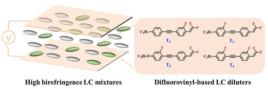 Tang, J.; Mao, Z.; An, Z.; Chen, R.; Chen, X.; Chen, P. Difluorovinyl Liquid Crystal Diluters Improve the Electro-Optical Properties of High-∆n Liquid Crystal Mixture for AR Displays. Molecules 2023, 28, 2458. https://doi.org/10.3390/molecules28062458
