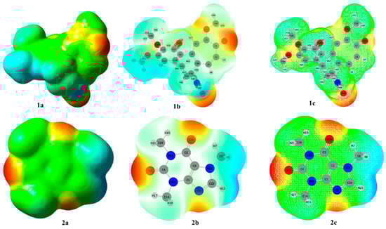 Molecular electrostatic potential of the purified compounds with different behaviors; (a) Total density, (b) Transparent, (c) Mesh format.