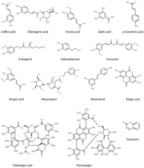Chemical structure of the other selected phenolics (from ChemSpider, http://www.chemspider.com/ accessed on 24 February 2023).