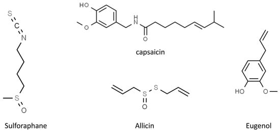 Chemical structure of the other selected phytochemicals (from ChemSpider, http://www.chemspider.com/ accessed on 24 February 2023).