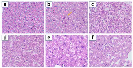 Liver tissues were embedded in paraffin and the paraffin sections were sliced and stained with hematoxylin–eosin (HE). The tissues were visualized by a CX41 microscope (Olympus, Tokyo, Japan) equipped with MDX4 (Lilai, Chengdu, China) digital camera system under 400× magnification.