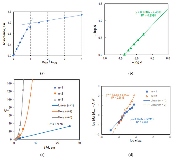 - Holme, A.; Langmyhr, F.J. A modified and a new straight-line method for determining the composition of weak complexes of the form AmBn. Anal. Chim. Acta 1966, 36, 383–391. [Google Scholar] [CrossRef]