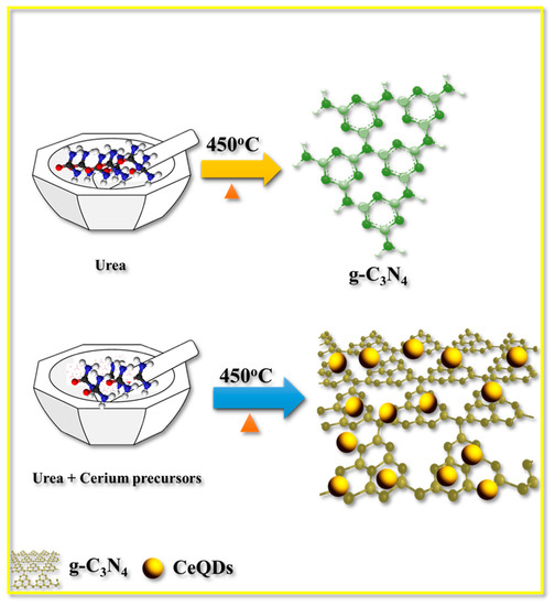 - Sun, Y.; Yuan, X.; Wang, Y.; Zhang, W.; Li, Y.; Zhang, Z.; Su, J.; Zhang, J.; Hu, S. CeO2 quantum dots anchored g-C3N4: Synthesis, characterization and photocatalytic performance. Appl. Surf. Sci. 2022, 576, 151901. [Google Scholar] [CrossRef]