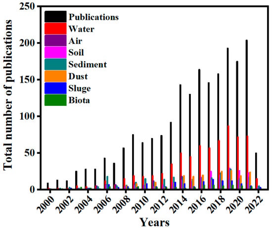 Yearly publications on TBBPA monitoring in environmental samples (Web of Science as of 4–4-2022).