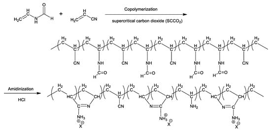 N-vinylformamide (NVF) was obtained from TCI (Tokyo Chemical Industry Co., Ltd., Shanghai, China). Acrylonitrile (AN) was purchased from Sinopec Qilu Petrochemical Company (Zibo, China). 2,2′-Azobisisoheptonitrile (AIVN) was purchased from Xiya Reagent Co., Ltd. (Linyi, China). Hydrochloric acid (HCl) and acetone were obtained from Sinopharm Chemical Reagent Co., Ltd. (Shanghai, China). Carbon dioxide (CO2), with a 99.9% minimum purity, was purchased from Jinan Deyang Special Gas Co., Ltd. (Jinan, China).