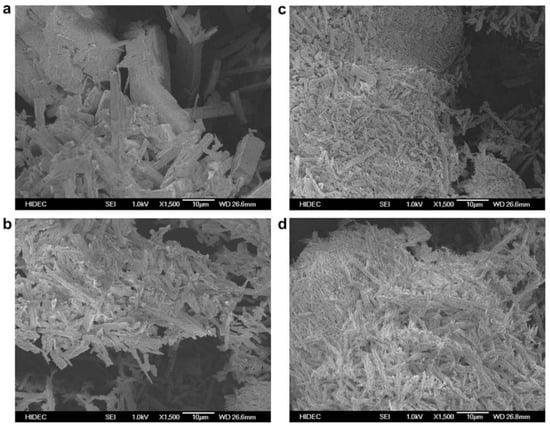 Scanning electron microscopy (SEM) images of anhydrous quercetin at 25 °C (a); quercetin dihydrate at 25 °C (b); quercetin dihydrate at 80 °C (c); and quercetin dihydrate at 140 °C (d) [27]. “Reproduced with permission from reference”.