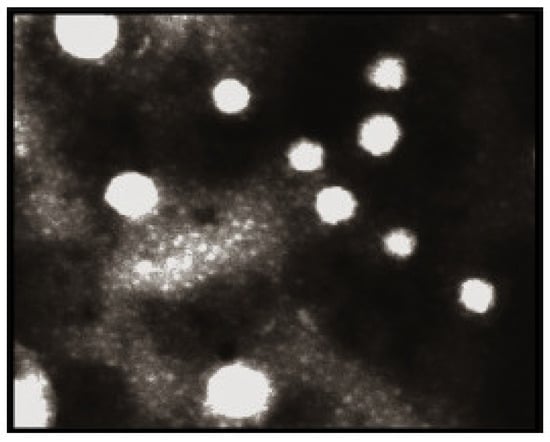 Arbain, N. H et al. have conducted an investigation on a system containing aerosol nanoemulsion with quercetin to determine the shape and size of the nanoemulsion droplets. The TEM image detected a spherical shape of the quercetin (Figure 5), which was in accordance with the DLS of the zeta sizer analysis [42]. Similarly, the globules in the morphological studies of the gel-based nanoemulsion of quercetin were discovered to be well-spaced and of consistent sizes by Gokhale et al. (Figure 6). Additionally, they were non-aggregated, spherical, and had a smooth, flexible border, demonstrating their resilience against Oswald ripening due to the globular collapse [43].