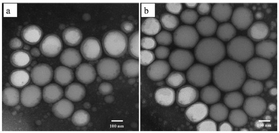 TEM images of the best nanoemulsions without quercetin (a); TEM images of the best Q-SNEDDS nanoemulsions at 72 h after Q-SNEDDS dilution (b) [44]. “Reproduced with permission from reference”.